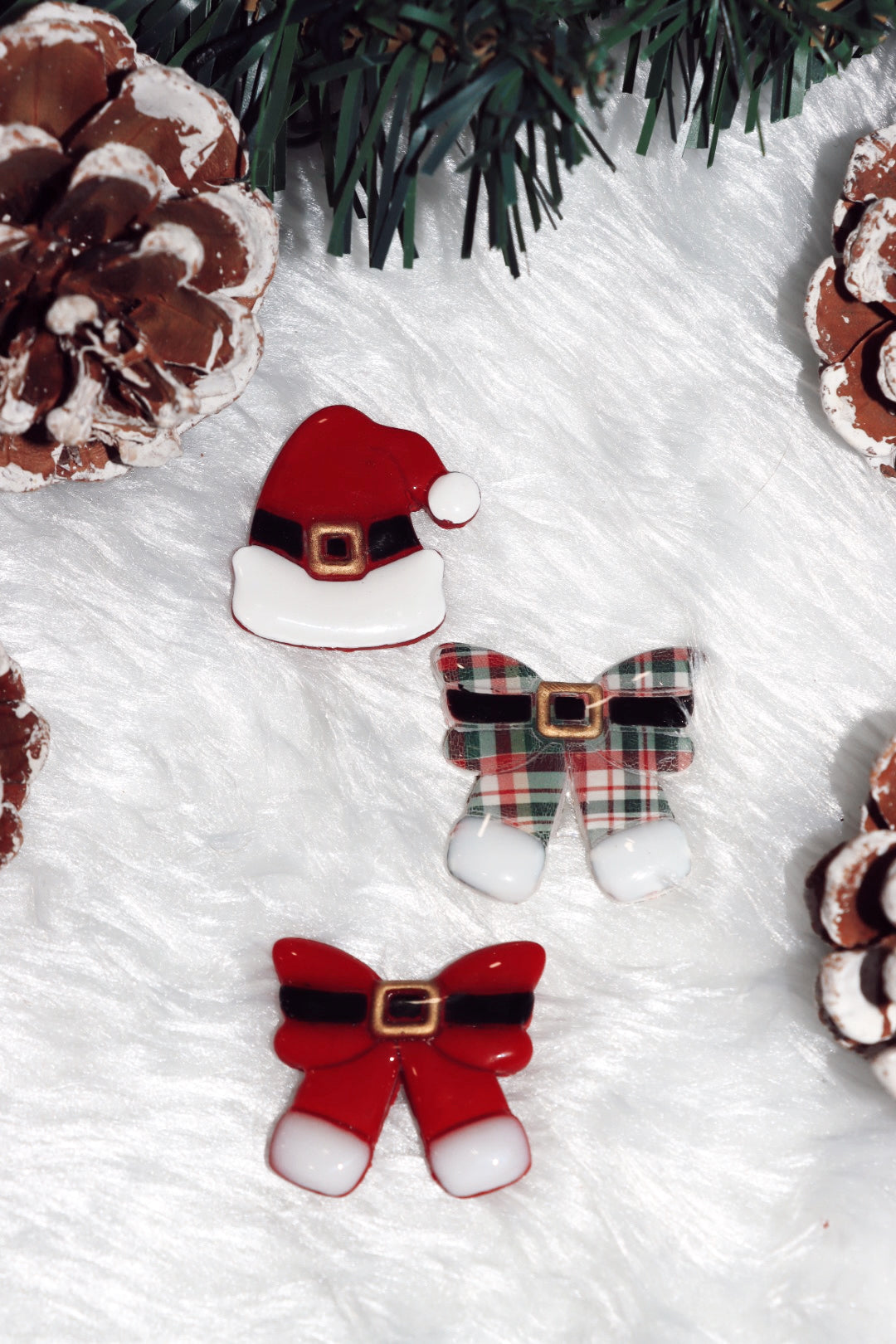 Each tag brings Santa’s spirit to life — from the simple Santa hat to a bow-shaped version, and a red + green plaid twist for those pups who love to make a festive statement. Perfect for photos by the tree or waiting up for Santa’s cookies.